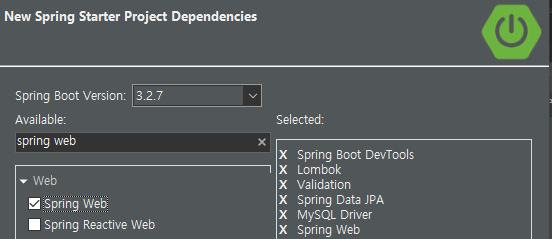 - Spring Boot Version : 2.7.10 선택