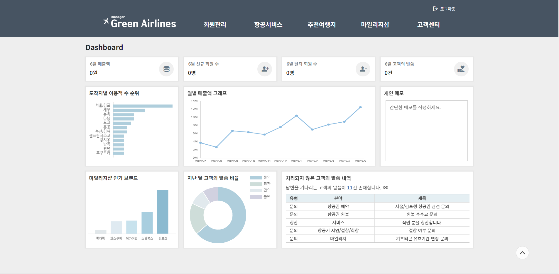 - 이번 달에 작성된 고객의 말씀 수