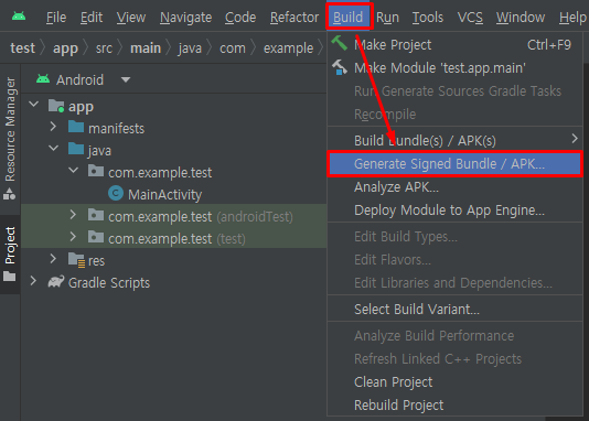 - 설치 파일 배포 → 'APK' (.apk 파일 생성)
