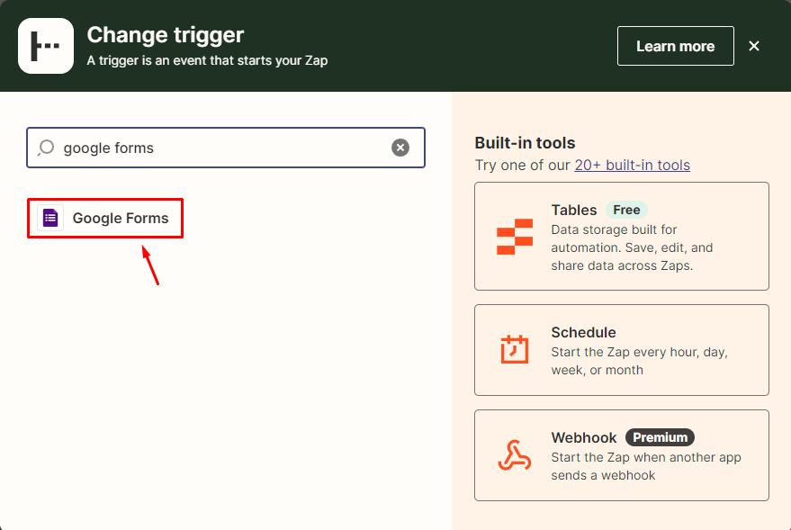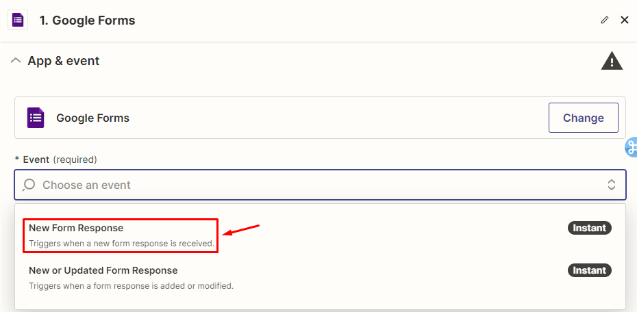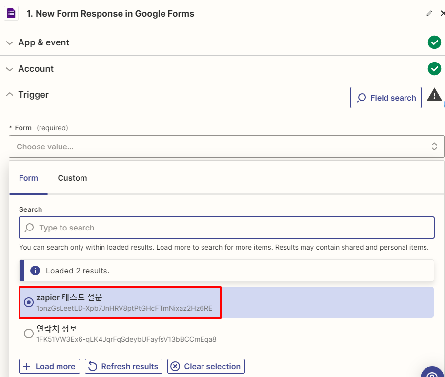 4) Trigger - 구글 폼 선택
