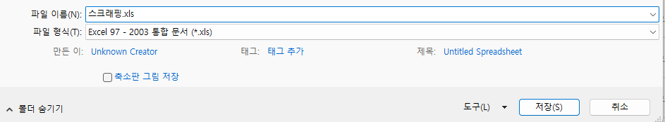 - 확장자를 .xls로 변경하기 (다른 이름으로 저장)