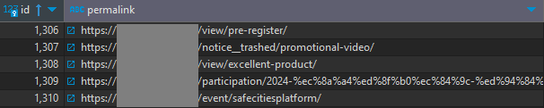 어떤 링크에서 에러가 발생했는지를 확인하기 위해 'wp_yoast_indexable' 테이블을 확인했다.