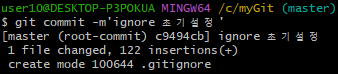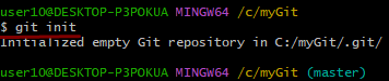 ▶ 완료 시 폴더에 .git 폴더가 생성되고, Git Bash에 (master)라고 출력됨