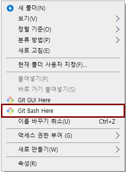 방법 2) 폴더에 들어가서 우클릭 → [Git Bash Here]