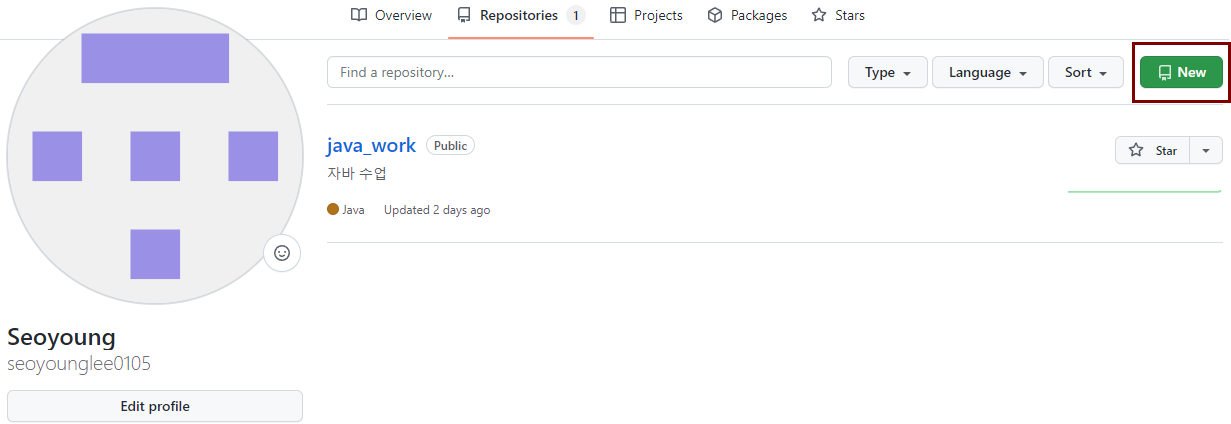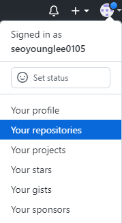 1. 우측 상단의 메뉴에서 'Your repositories' 선택