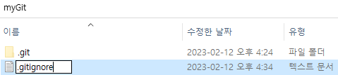 3. 로컬 저장소 폴더에 .gitignore 확장자로 텍스트 파일 생성