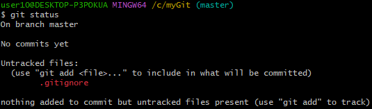 5. git status를 입력해서 확인해보면 .gitignore가 untracked files 목록에 뜸